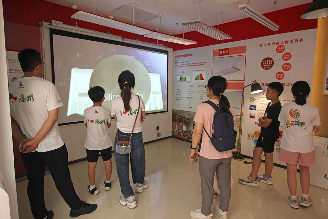 智慧灯具应用展厅展出了光电科技在照明领域的最新应用。紫外杀菌灯、抑郁灯、护眼灯等一系列灯具产品,不仅提供了健康保护,还关注了情绪调节和视力保护,为孩子们展示了一个更加健康、智能的未来生活。